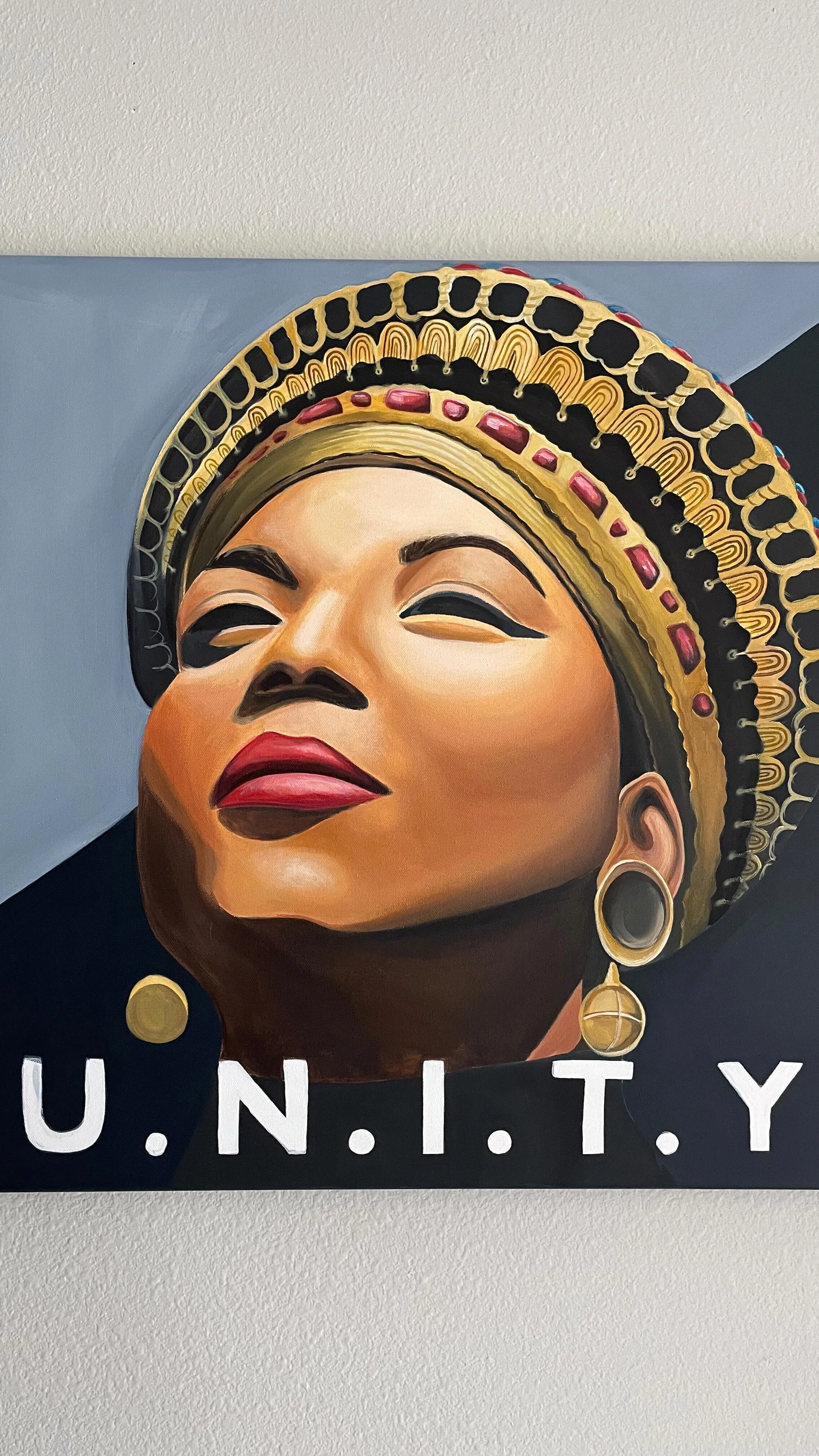Snow is well known for creating work that embodies the essence of black women throughout all walks of life. Her inspiration draws from life experience and appreciation for those consistently overcoming obstacles to reach new heights. With a background in engineering, she blends her love of symmetry and precision with her love for color, resulting in a combination of boldness and realism in her body of work.